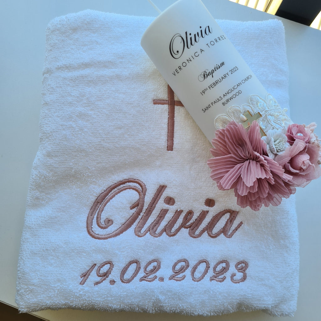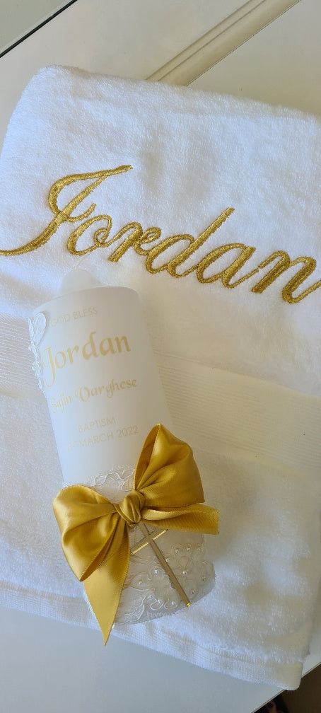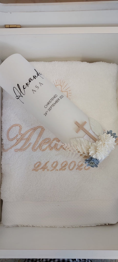Upon receiving your order, we will email you regarding TOWEL FONT / COLOUR selections. CANDLE proofing to be emailed within 2-3 days of order being placed.