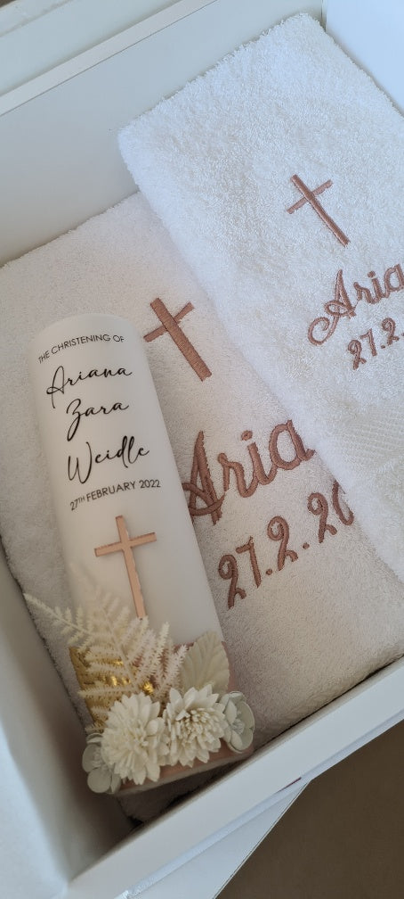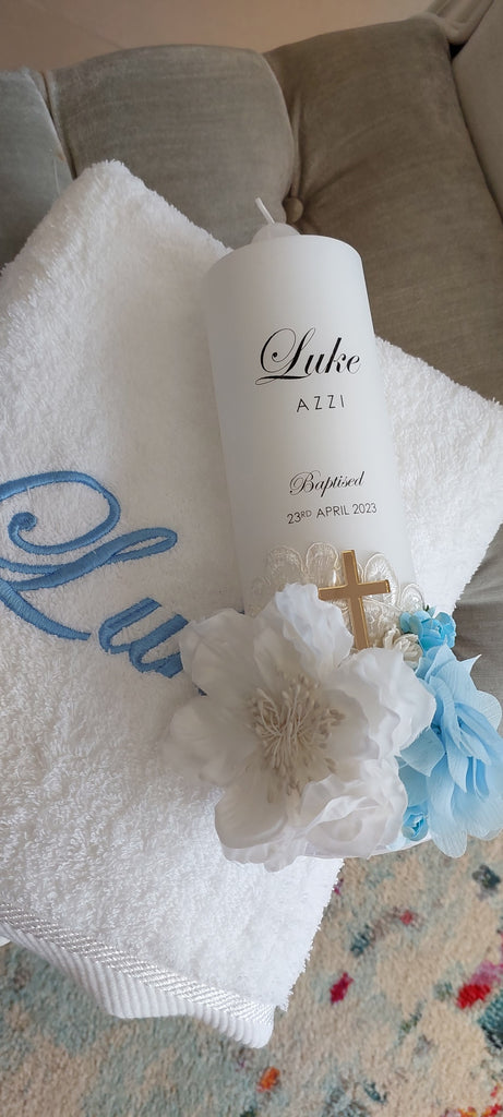 - Choice of CANDLE (25x7cm) - choose from our Christening Candle range